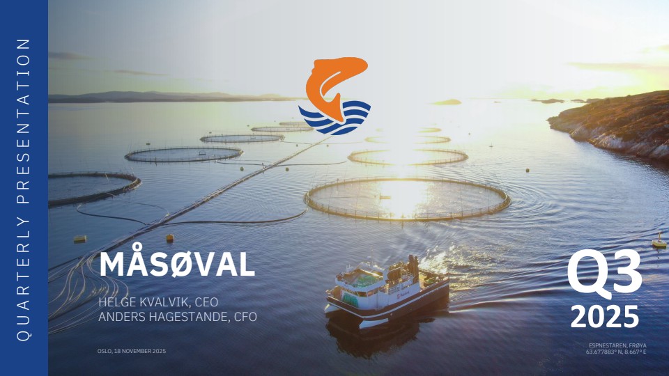 «It is highly satisfying to confirm that we have maintained control and increased biomass during a critical phase of the year. Our investments in expanded treatment capacity have strengthened our resilience and positioned us for improved profitability going forward,» says Helge Kvalvik, CEO of Måsøval.